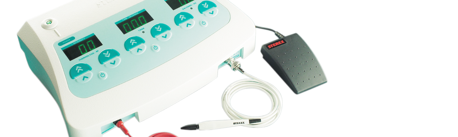 Le Sterex Blend est un appareil qui offre du courant galvanique, de la diathermie et une combinaison des deux. Il est utilisé pour l’épilation à l’aiguille (nécessaire pour les poils blancs, par exemple, qui n’ont pas pu être traités par IPL) et pour les problèmes de peau comme les angiomes stellaires, Campbell de Morgan, couperose, acrochordons... qui peuvent être traités au moyen de la coagulation.